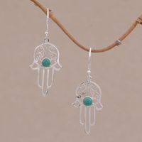 Reconstituted Turquoise Sterling Silver Hamsa Hand Earrings 'Hamsa Protection' Item ID: 2671734697