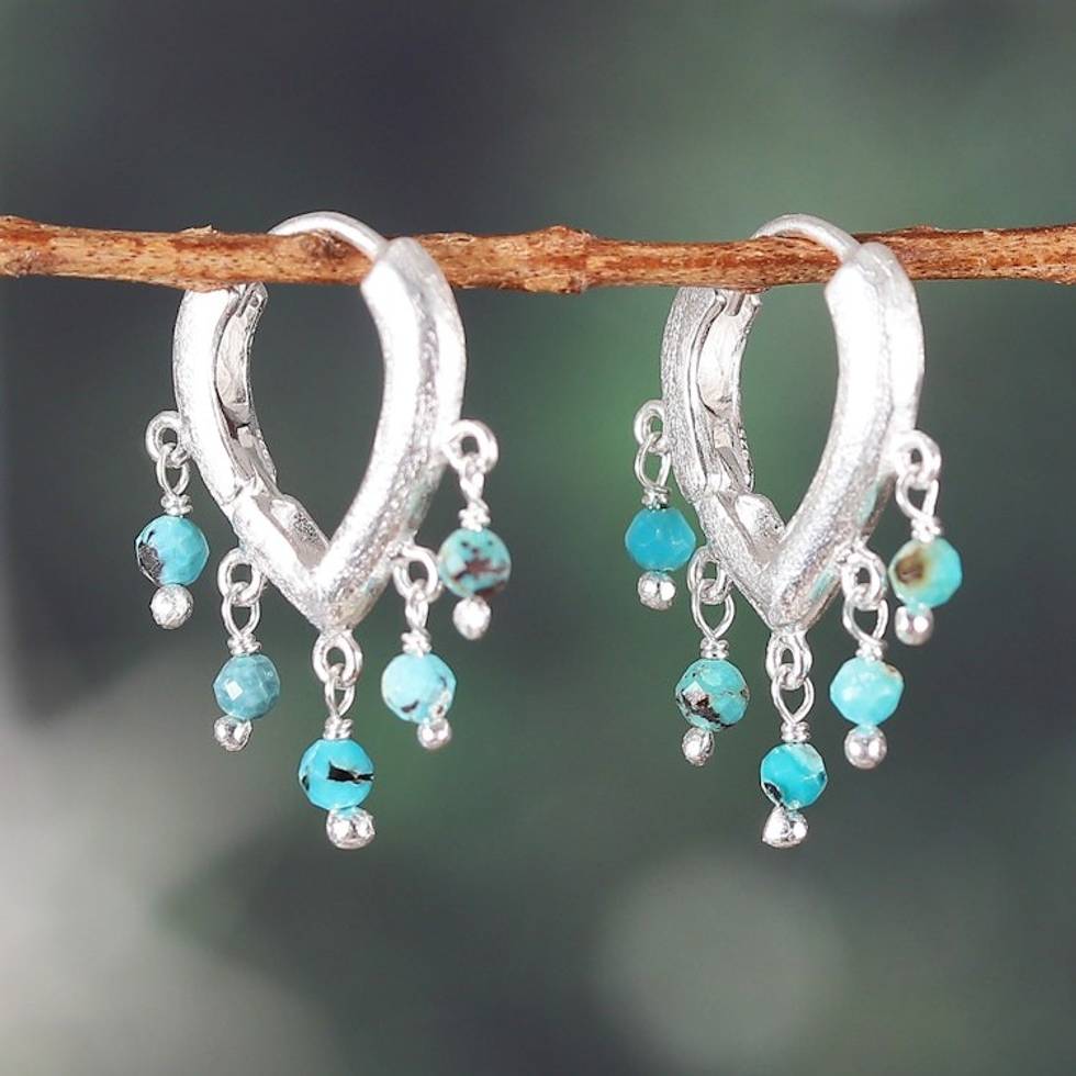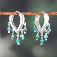 Reconstituted Turquoise Sterling Silver Rain Hoop Earrings 'Dancing Raindrops' Item ID: 2671781172