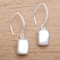 Rectangular Cultured Pearl Dangle Earrings from Bali 'Snowy Rectangles' Item ID: 2671737751