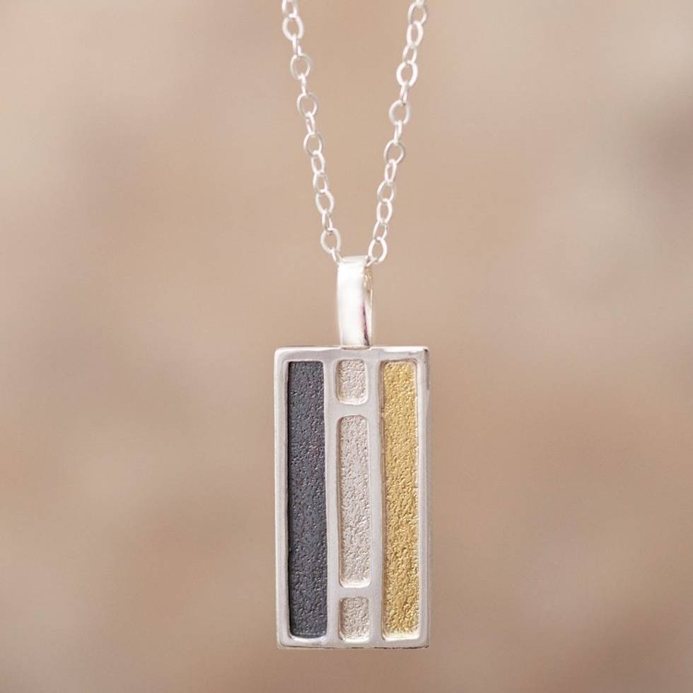 Rectangular Gold Accent Silver Pendant Necklace from Peru 'Window of Light' Item ID: 2669919629