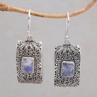 Rectangular Rainbow Moonstone and Sterling Silver Earrings 'Mystical Sanctuary' Item ID: 2671736813