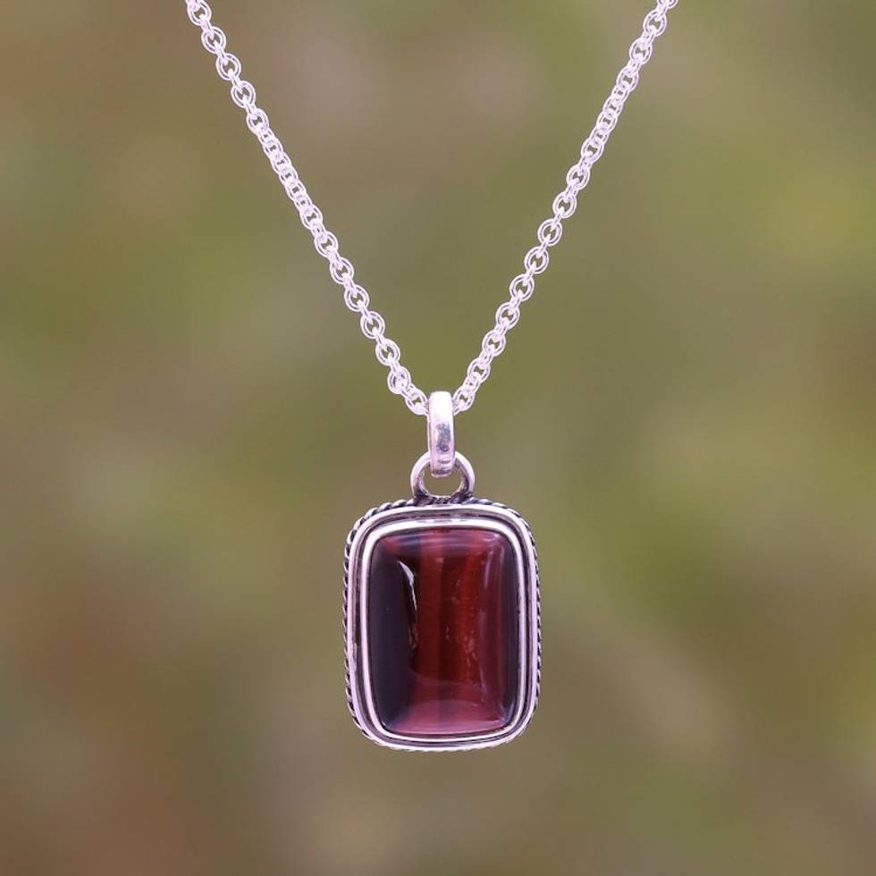 Rectangular Red Tiger's Eye Pendant Necklace from Bali 'Red Rectangle' Item ID: 2671736636