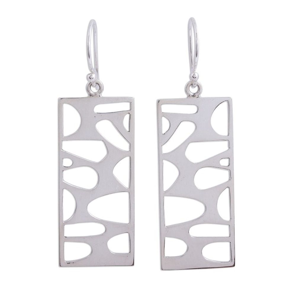 Rectangular Taxco Silver Dangle Earrings from Mexico 'Windows to My Soul' Item ID: 2671808921