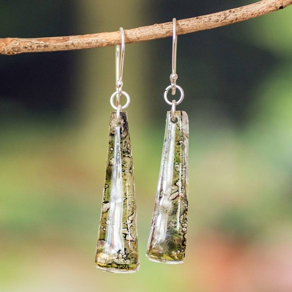 Recycled CD Dangle Earrings in Green from Guatemala 'Peaceful Life in Green' Item ID: 2671777131