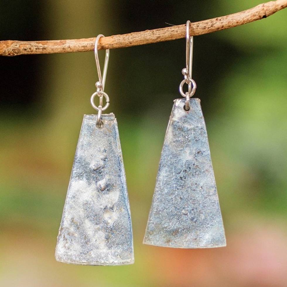 Recycled CD Dangle Earrings in Grey from Guatemala 'Silver Light' Item ID: 2671777103