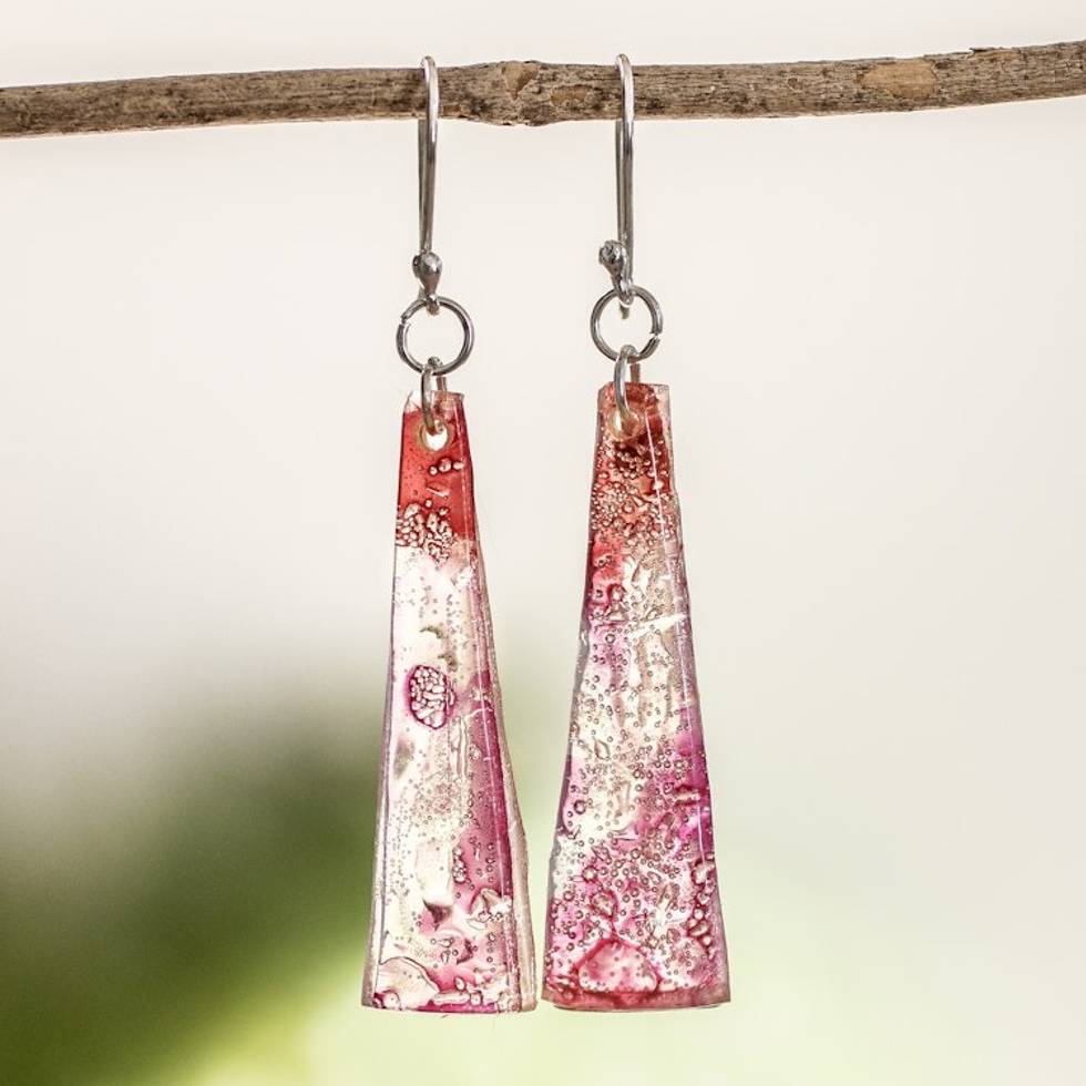 Recycled CD Dangle Earrings in Pink from Guatemala 'Peaceful Life in Pink' Item ID: 2669933036