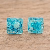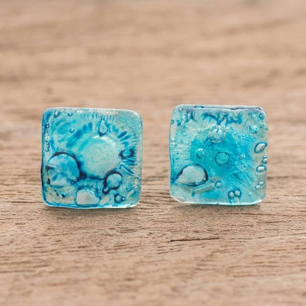 Recycled CD Stud Earrings in Blue from Guatemala 'Bubble Explosion in Blue' Item ID: 2671777123