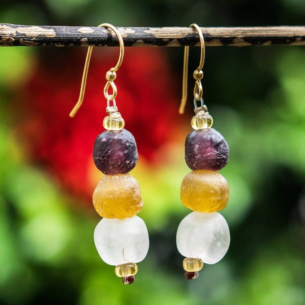 Recycled Glass and Plastic Beaded Earrings from Ghana 'Fresh Novelty' Item ID: 2671800794