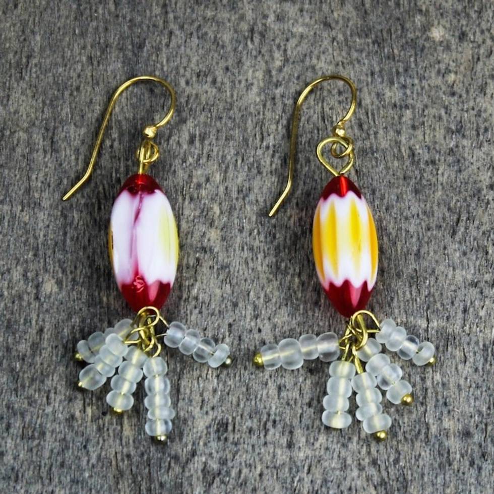 Recycled Glass Bead Dangle Earrings 'Cheerful Beauty' Item ID: 2671806155