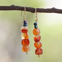 Recycled Glass Beaded Dangle Earrings in Warm and Dark Hues 'Unique Sunset' Item ID: 2671805239