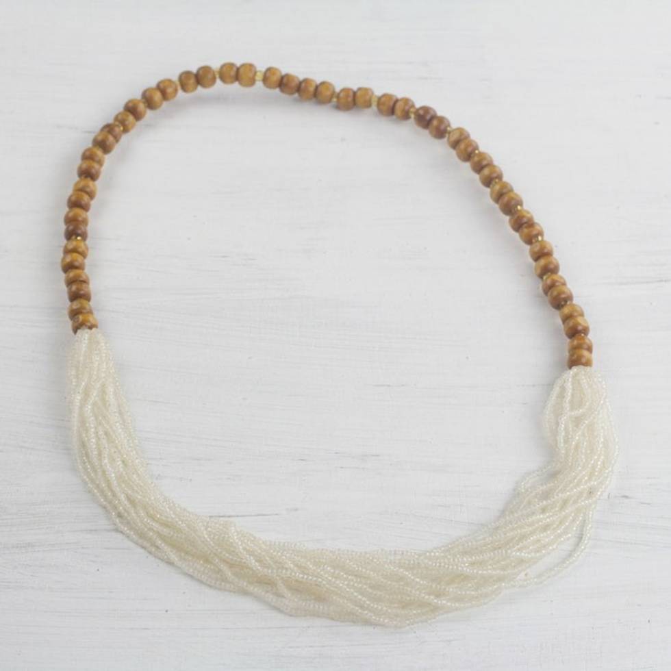 Recycled Glass Beaded Necklace in Cool White from Ghana 'Cool White Beauty' Item ID: 2671803655