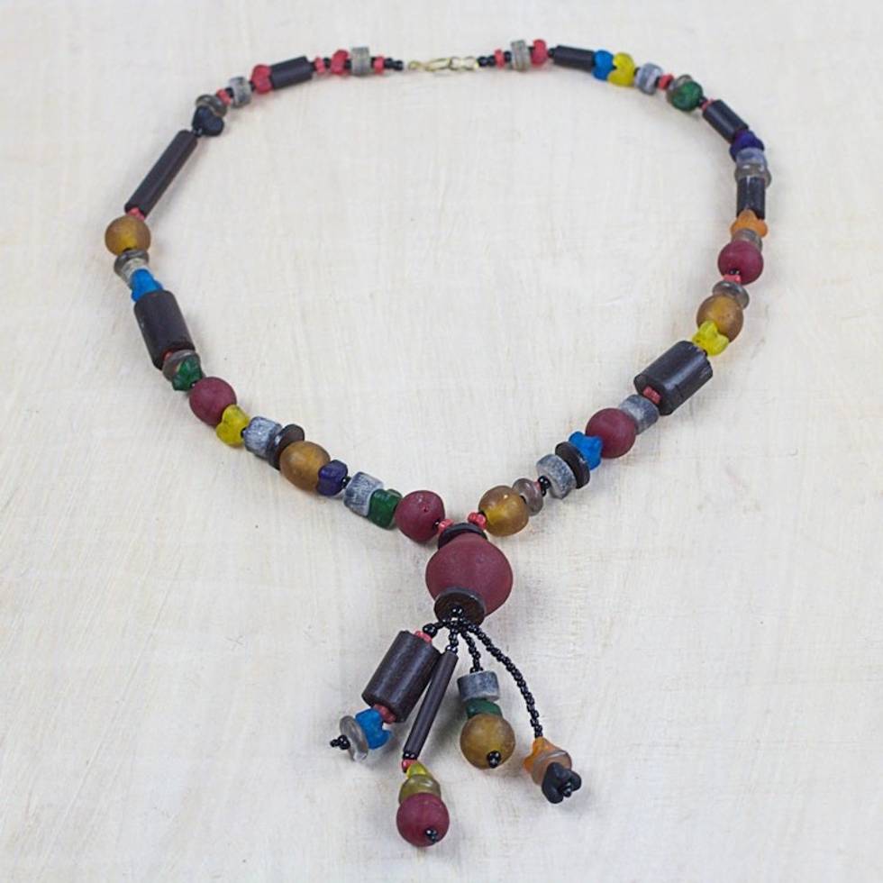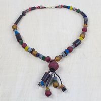 Recycled Glass Beaded Pendant Necklace from Ghana 'Recycled Medley' Item ID: 2671803794