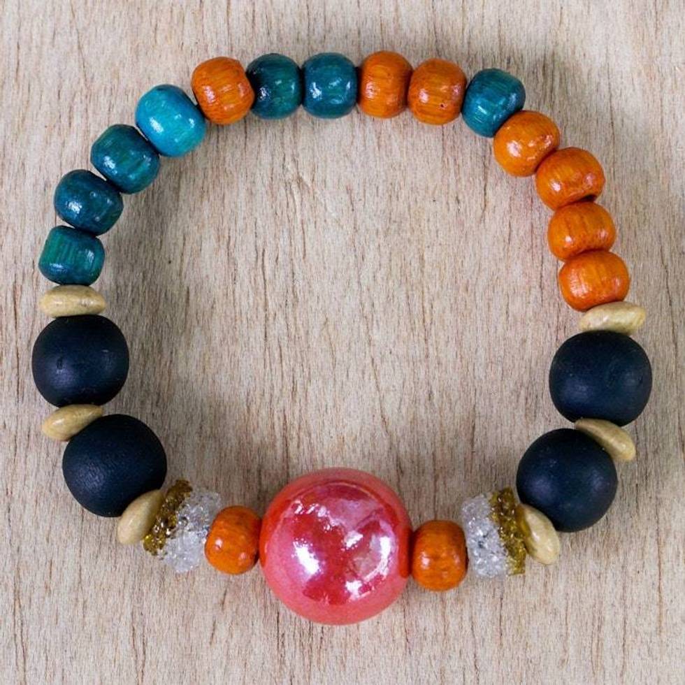 Recycled Glass Beaded Stretch Bracelet 'Market Beauty' Item ID: 2676646518