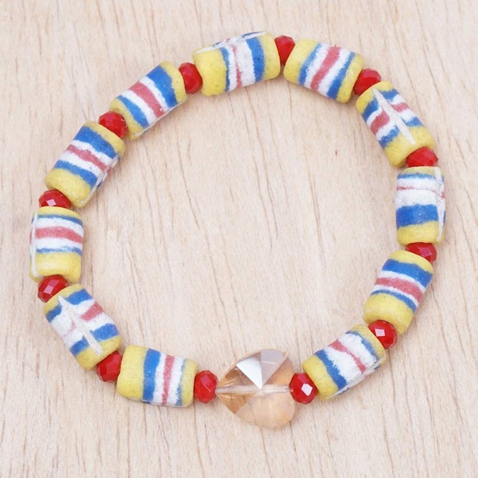 Recycled Glass Beaded Stretch Bracelet with Crystal Pendant 'Colorful Abifao' Item ID: 2671805390