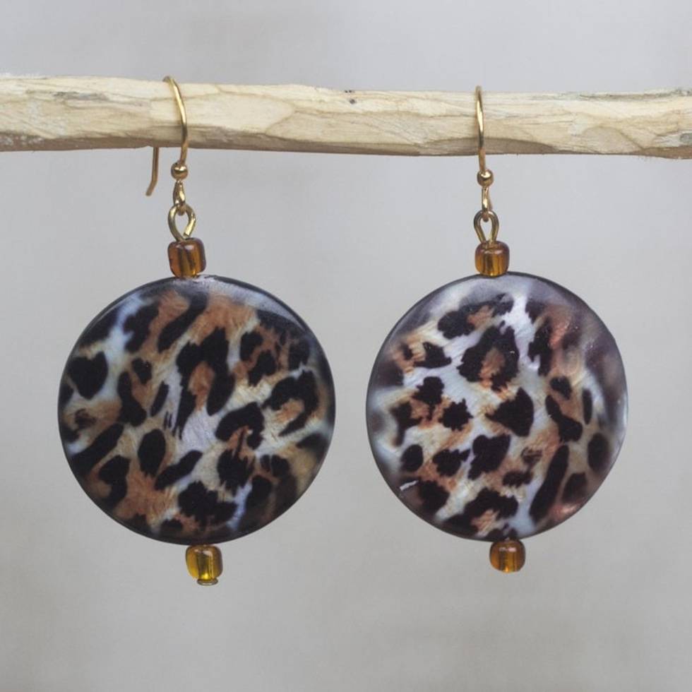 Recycled Glass Leopard Motif Earrings from Ghana 'Leopard Style' Item ID: 2671816154