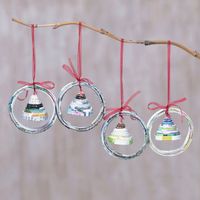 Recycled Magazine Bell-Shaped Holiday Ornaments Set of 4 'Noel Bells' Item ID: 2671736911