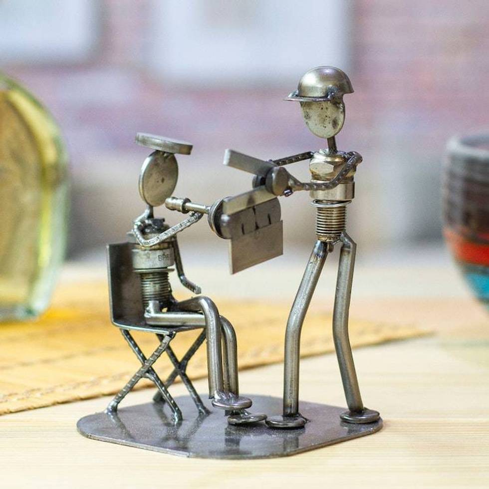 Recycled Metal and Auto Part Filmmaker Sculpture from Mexico 'Rustic Film Director' Item ID: 2676647006