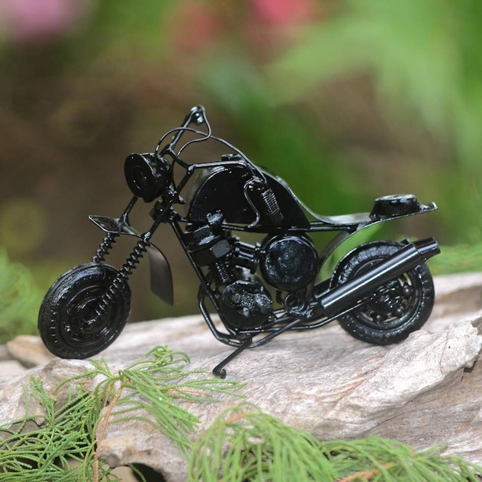 Recycled Metal Black Motorbike Sculpture 'Moto Racer in Black' Item ID: 2671821577