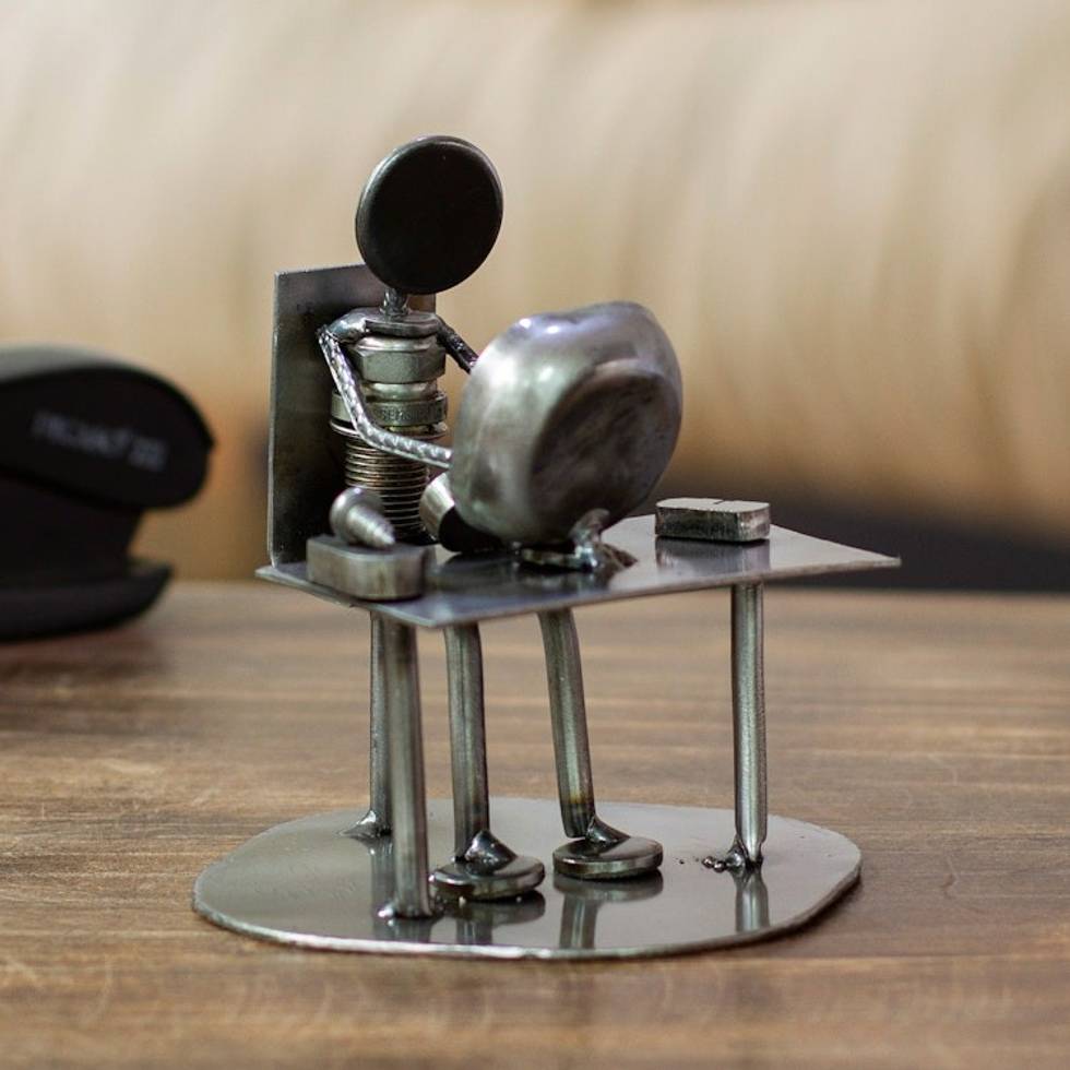 "At first, little by little, I began to craft figures from scraps and discarded mechanical parts — mostly from cars and bicycles. And so I began to create sculptures, soldering the pieces together and giving them shape as I imagined they should look.
