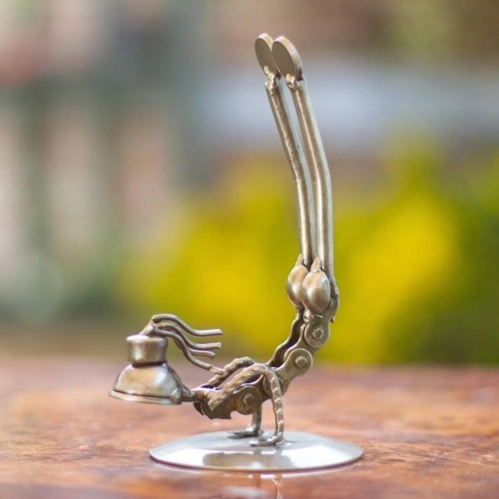 "At first, little by little, I began to craft figures from scraps and discarded mechanical parts — mostly from cars and bicycles. And so I began to create sculptures, soldering the pieces together and giving them shape as I imagined they should look.