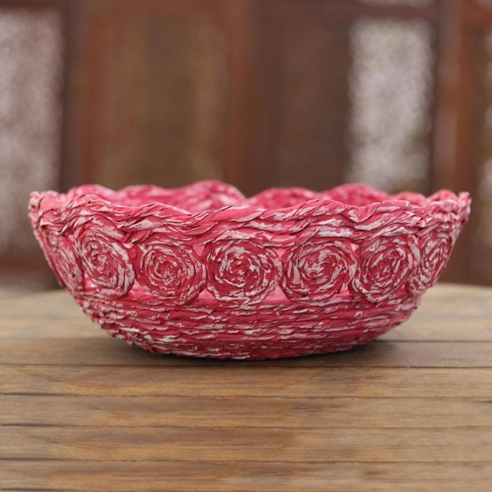 Recycled Paper Basket in Red from India 'Beautiful Spirals in Pink' Item ID: 2671792238