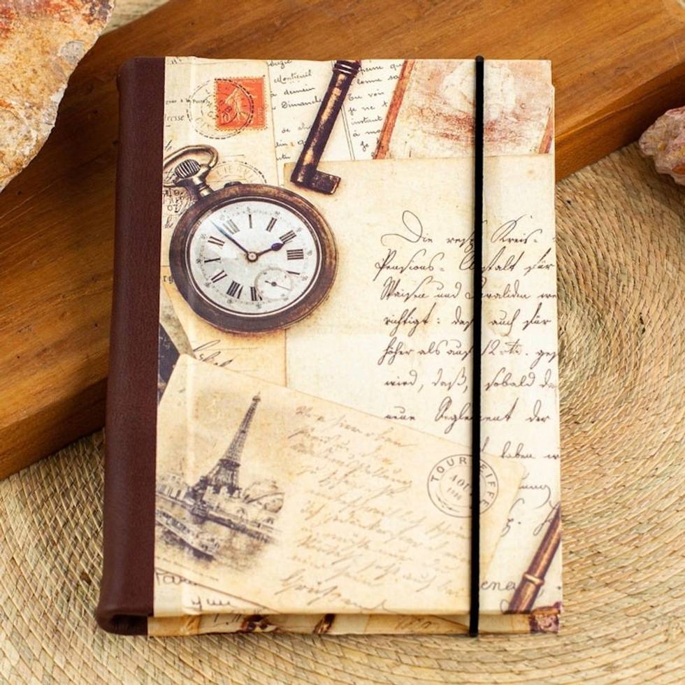 Recycled Paper Handmade Journal with Travel Motifs 'Time Flies' Item ID: 2671807975