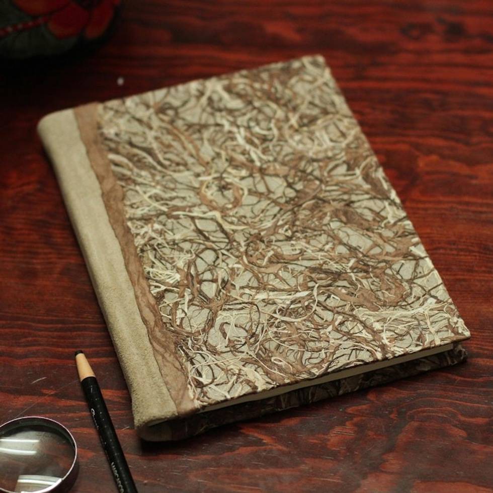 Recycled Paper Journal in Brown and Beige from Mexico 'Forest Nest' Item ID: 2671808794