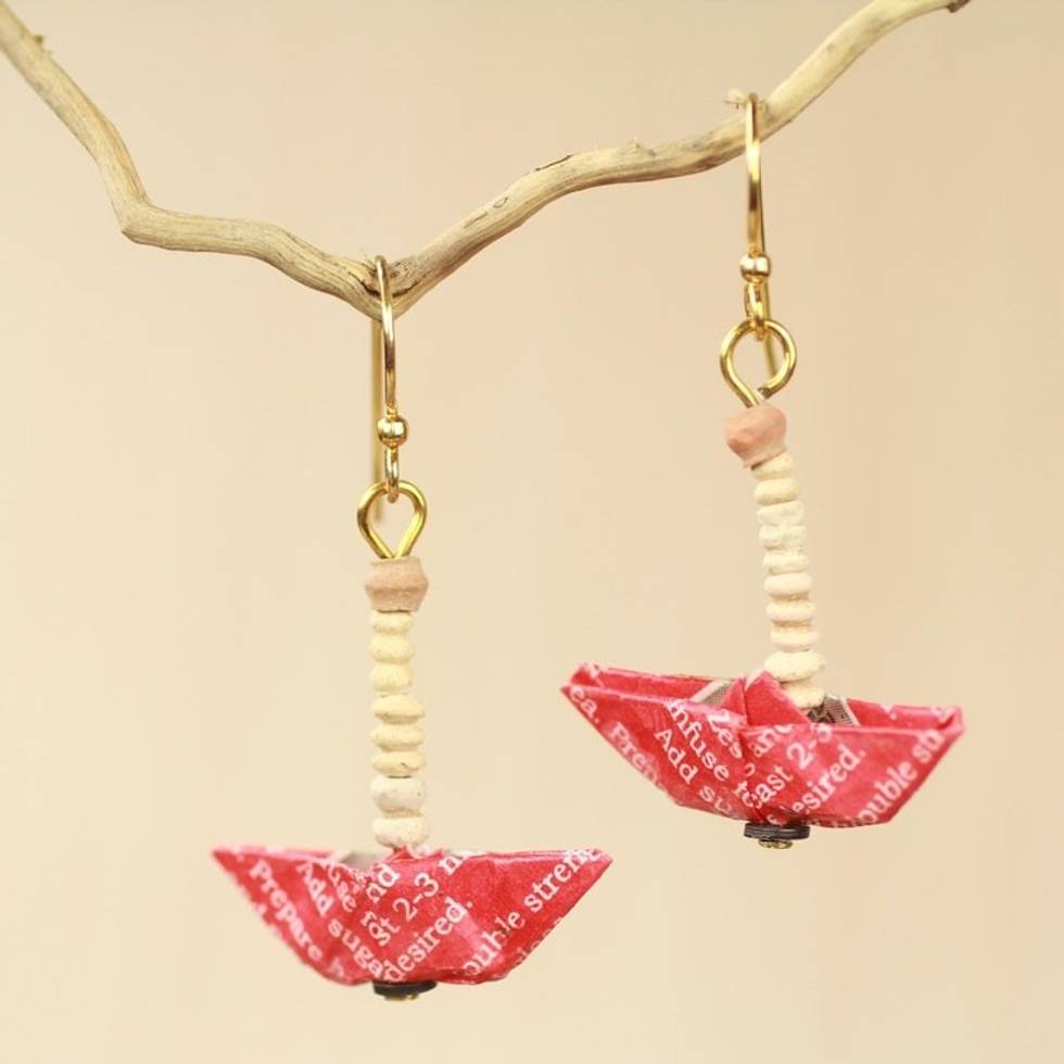 Recycled Paper Red Sailboat Earrings Crafted by Hand 'Red Boats' Item ID: 2671801188