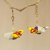 Recycled Paper Sailboat Earrings Crafted by Hand in Ghana 'Yellow Boats' Item ID: 2671800872