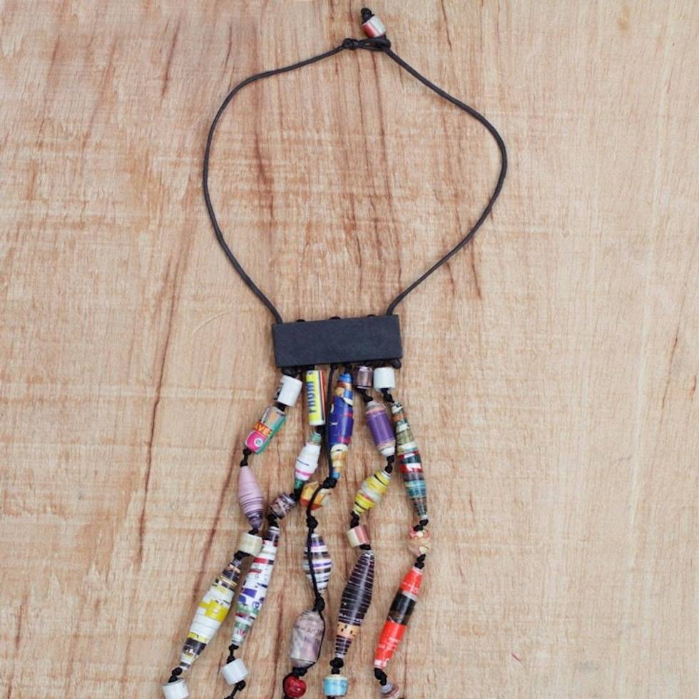 Recycled Paper Waterfall Necklace Crafted in Ghana 'Eco Tradition' Item ID: 2671803747