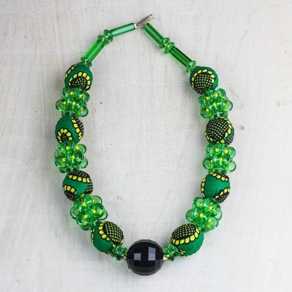Recycled Plastic and Cotton Beaded Necklace in Green 'Green Goodness' Item ID: 2671805816