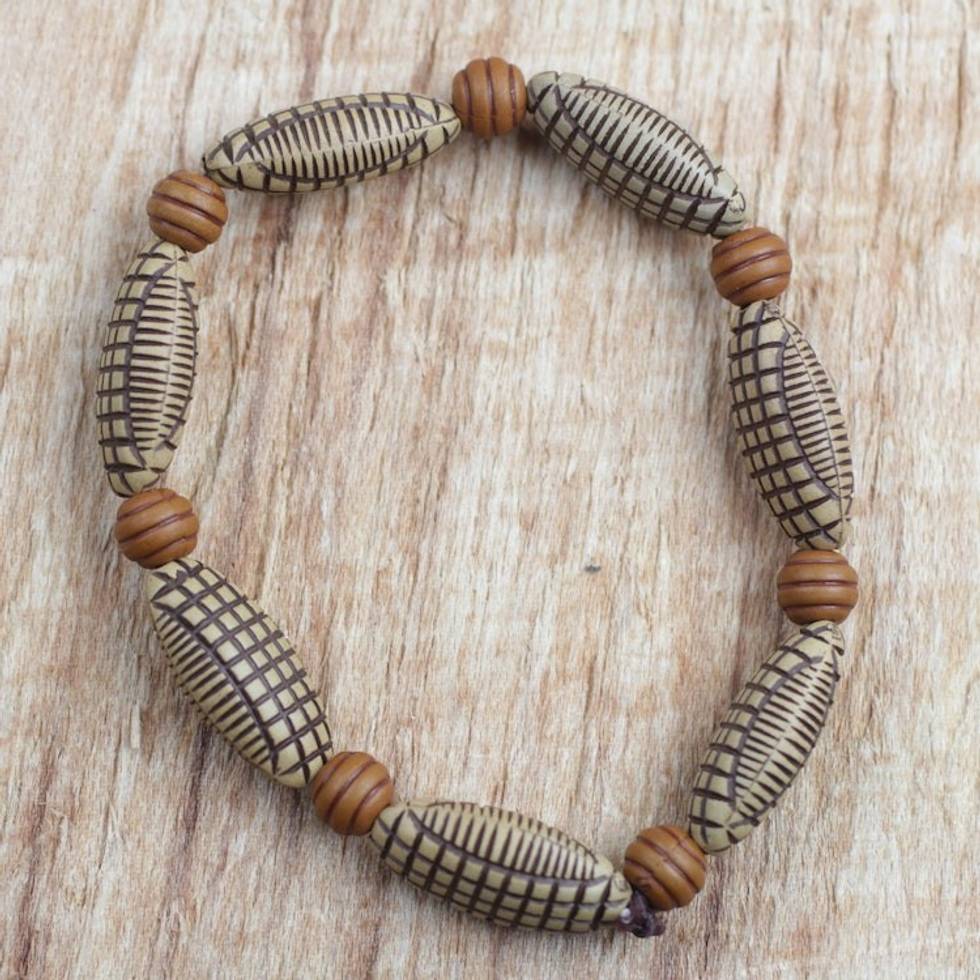 Recycled Plastic Beaded Stretch Bracelet from Ghana 'Tortoise Home' Item ID: 2671803451