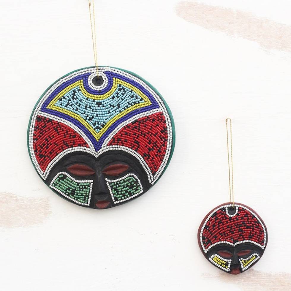 Recycled Plastic Beaded Wood Ornaments from Ghana Pair 'Ashanti Beauty' Item ID: 2671806070
