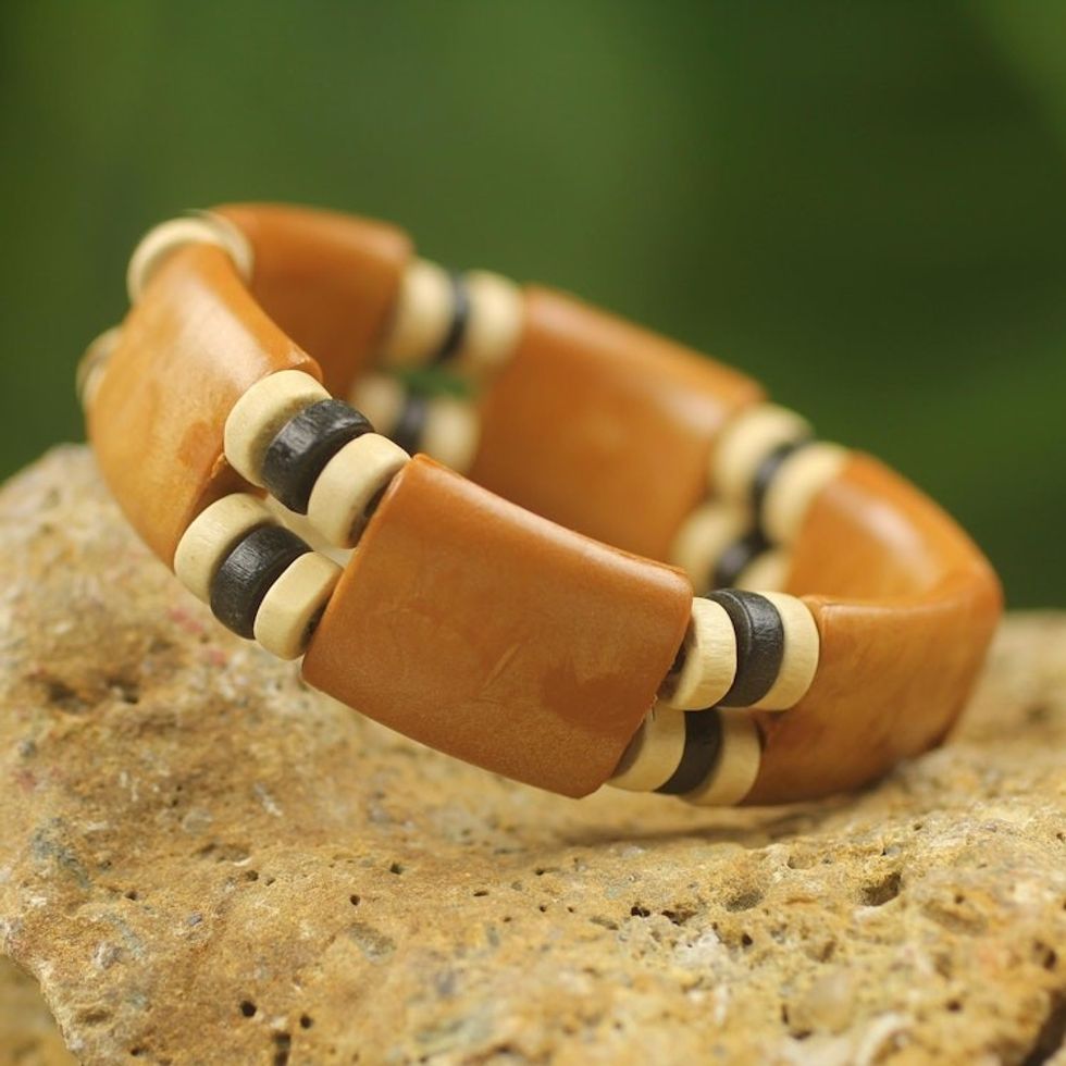 Recycled Plastic Wood Eco Friendly Bracelet from Africa 'Butterscotch Connection' Item ID: 2671803852
