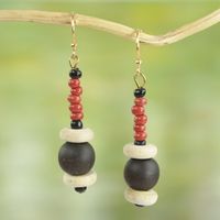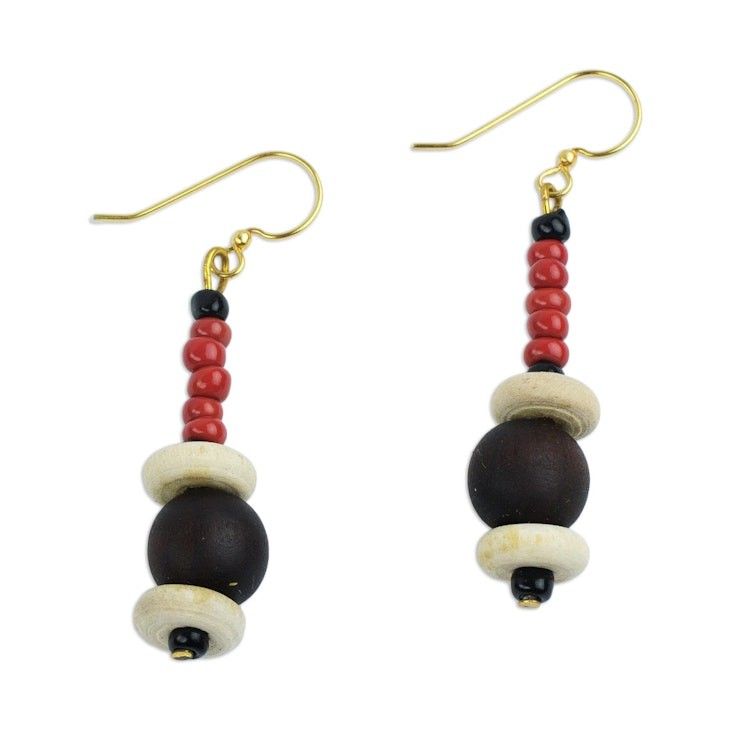 Red Agate and Wood Beaded Earrings Artisan Crafted Jewelry 'Stay with Me' Item ID: 2671816095