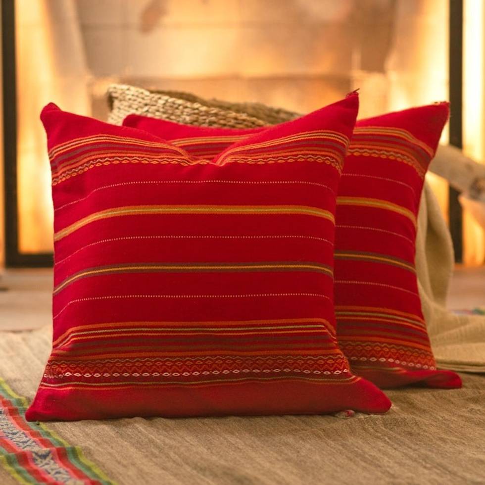 Red Alpaca Blend Hand Woven Cushion Cover Pair 'Peruvian Cherry' Item ID: 2669904212