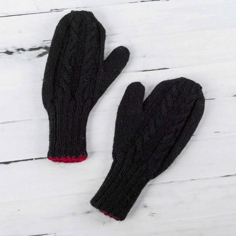 Red and Black Reversible Hand Knitted 100 Alpaca Mittens 'Cherry Cola' Item ID: 2671820309