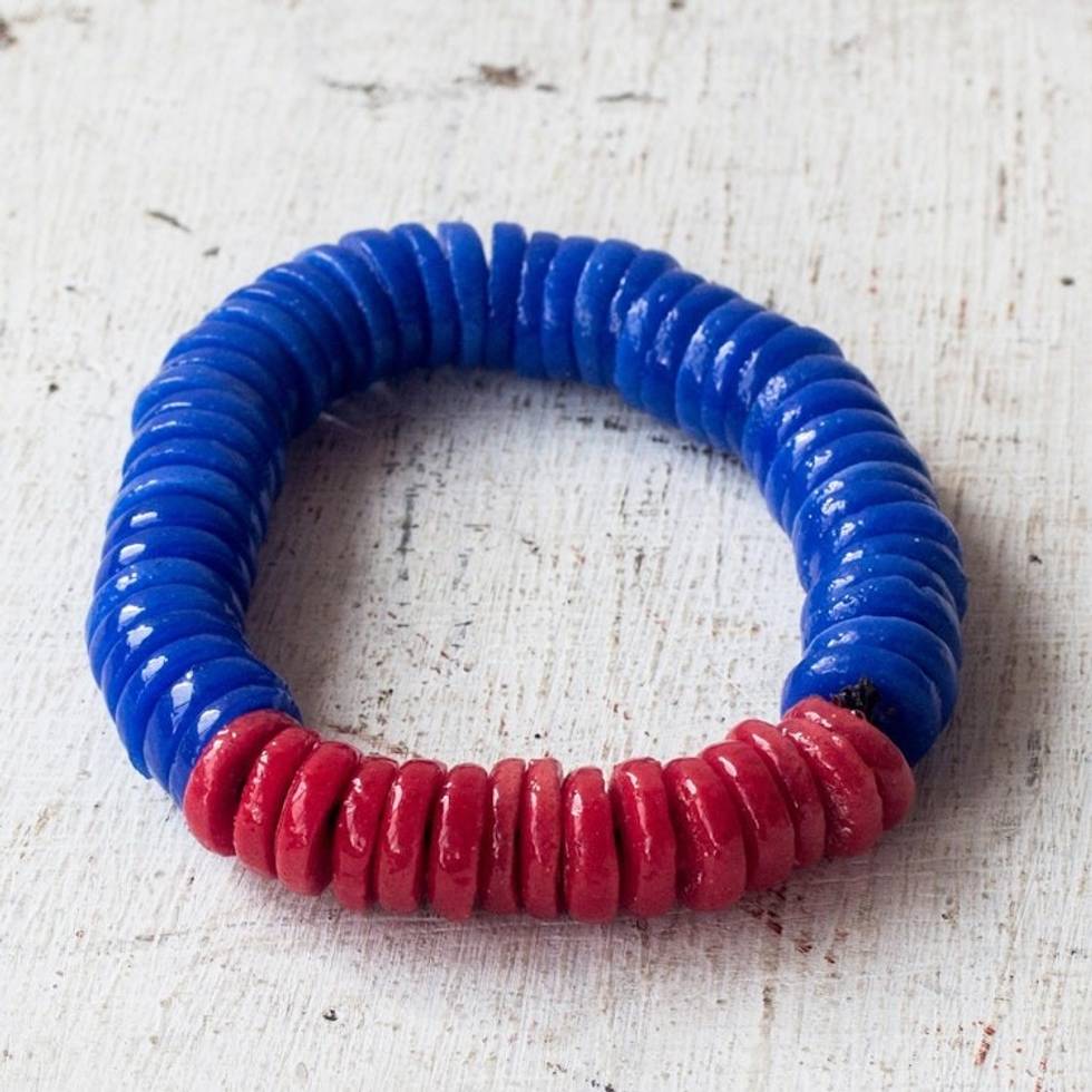 Red and Blue Recycled Plastic Beaded Stretch Bracelet 'Adepa' Item ID: 2671805636