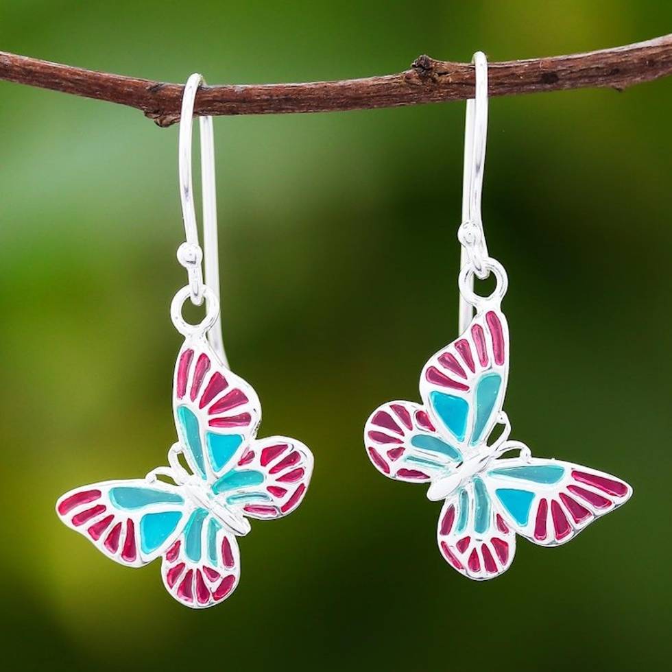 Red and Blue Sterling Silver Butterfly Dangle Earrings 'Festive Butterflies' Item ID: 2671799096