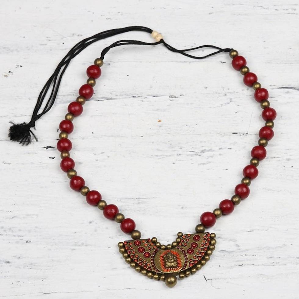 Red and Gold Divine Ganesha Ceramic Pendant Necklace 'Divine Ganesha' Item ID: 2671791997