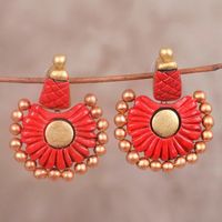 Red and Gold Hand-Painted Flower Ceramic Dangle Earrings 'Red Bangalore' Item ID: 2671790324