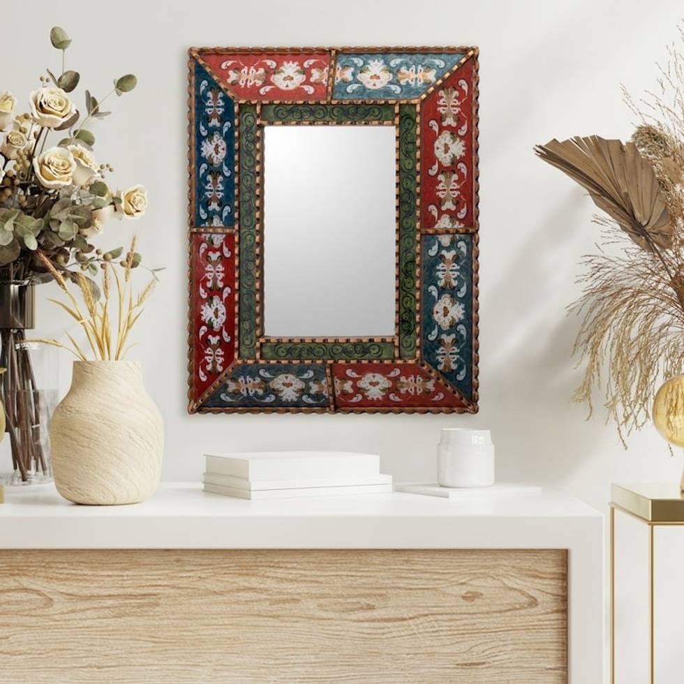 Red and Green Colonial Style Reverse Painted Glass Mirror 'Red and Green Colonial Garden' Item ID: 2671691655