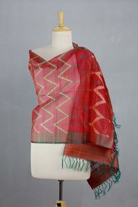 Red and Green Silk Shawl Wrap from India 'Scarlet Fantasy' Item ID: 2671793100