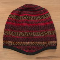 Red and Multicolored Alpaca Blend Knit Hat from Peru 'Diamond Warmth' Item ID: 2671695450
