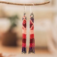 Red and Rose Crystal and Glass Beaded Waterfall Earrings 'Red Rose Waters' Item ID: 2671626894