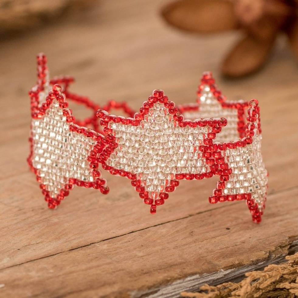 Red and Silver-Hued Star Beaded Bracelet from Guatemala 'Silver Starlight' Item ID: 2671769057