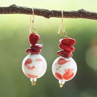 Red and White Recycled Glass Beaded Dangle Earrings 'Devotion Planet' Item ID: 2671804353