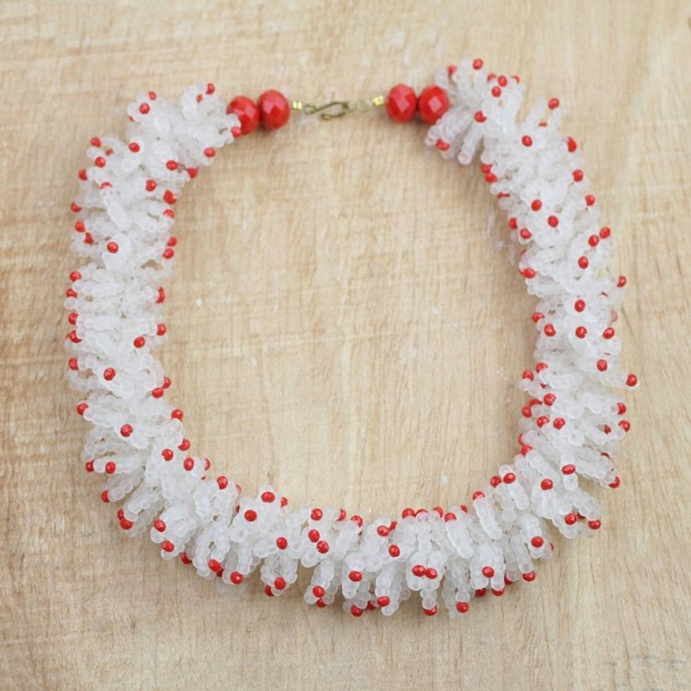 Red and White Recycled Plastic Beaded Necklace from Ghana 'Red Coral' Item ID: 2671803885