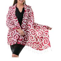 Red and White Silk Shawl Dyed by Hand 'Red Thai Maze' Item ID: 2671641358