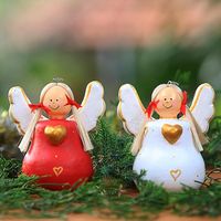Red and White Wood Angel Statuettes from Bali Pair 'Heart Angels' Item ID: 2671736610